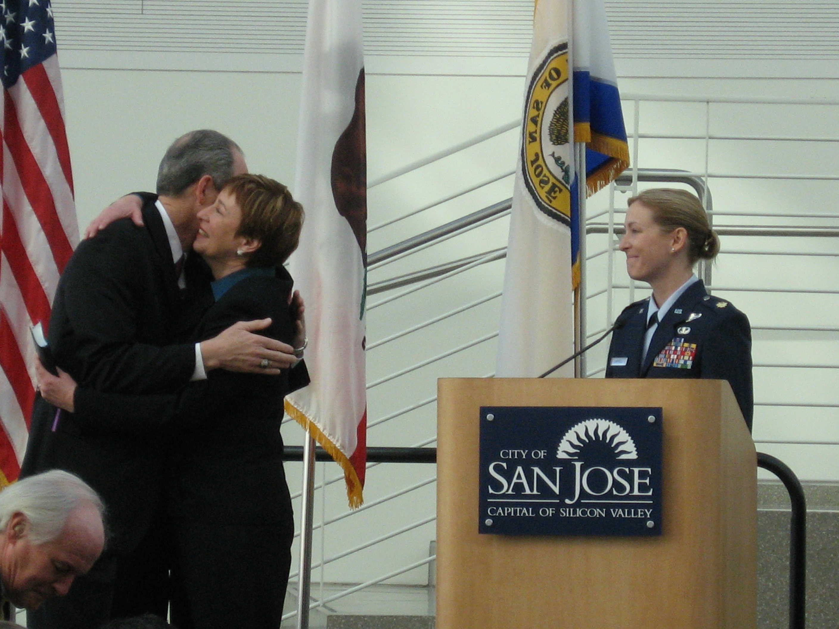Hosted by Connie Martinez of 1st Act Silicon Valley, the ceremony included each Councilmember and the Mayor taking the oath of office accompanied on stage by friends and family. Each official also had the choice of who to administer the oath. Major Kim Campbell, USAF, Mayor Reed's daughter, administered the oath of office and his wife, Paula, stood at his side. The ceremony included brief Inaugural Remarks by Mayor Reed.