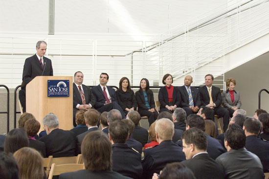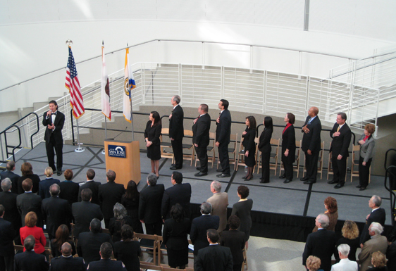 The Inauguration of newly-elected Mayor Chuck Reed, along with five city councilmembers: including newly-elected District 1 Councilmember Pete Constant and District 3 Councilmember Sam Liccardo; and re-elected District 5 Councilmember Nora Campos, District 7 Councilmember Madison Nguyen, and District 9 Councilmember Judy Chirco.